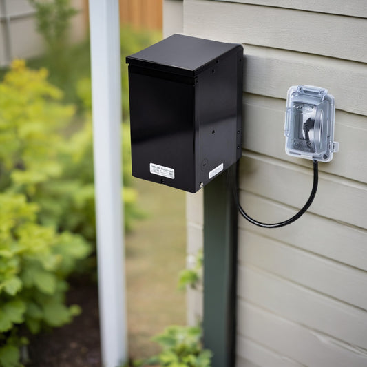 Shop durable low voltage landscape lighting transformers at Silhouette Lights. Perfect for harsh Canadian weather. Expandable and energy-efficient solutions.